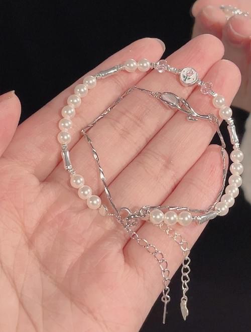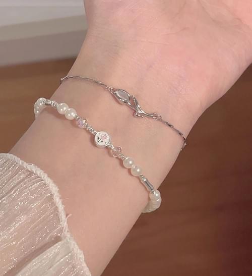 珍珠的温润中和了露肤的性感,郁金香花瓣在锁骨下方闪着微光
