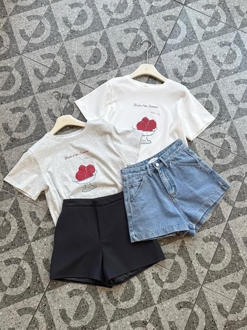 基础百搭T恤版型,宽松不挑身材,遮肉显瘦;搭配高腰短裤,拉长腿部比例,显高显腿长。
